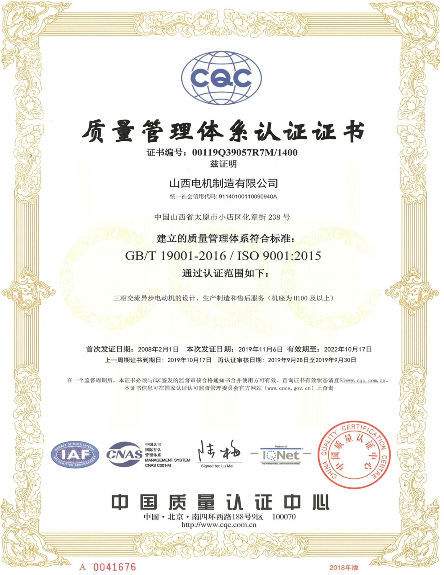 山西電機制造有限公司是一家具有70多年歷史,專業(yè)研發(fā)制造三相異步電動機的老牌國有企業(yè),注冊資金26250萬元,現(xiàn)有在崗職工一千余人。2014年5月完成整體搬遷改造,現(xiàn)址位于太原市小店區(qū)化章街238號,新增設(shè)備投資約5個億,整體裝備水平得到大幅提高。公司深度融合技術(shù)創(chuàng)新與精工制造,成功躋身"國家級高新技術(shù)企業(yè)"行列,并榮獲"省級專精特新中小企業(yè)"認(rèn)證。作為中國電器工業(yè)協(xié)會中小型電機分會副理事長單位,公司持續(xù)踐行質(zhì)量強企戰(zhàn)略,相繼獲評國家級AAA企業(yè)信用等級、山西省"守合同重信用"企業(yè),榮膺"中國最具影響力品牌企業(yè)"稱號。通過了質(zhì)量管理體系、環(huán)境管理體系、職業(yè)健康安全管理體系認(rèn)證,以及能源管理與知識產(chǎn)權(quán)管理體系認(rèn)證。產(chǎn)品憑借卓越品質(zhì)斬獲"山西省名牌產(chǎn)品"殊榮,在行業(yè)內(nèi)樹立起極具辨識度的品牌標(biāo)桿,贏得市場廣泛認(rèn)可與信賴。